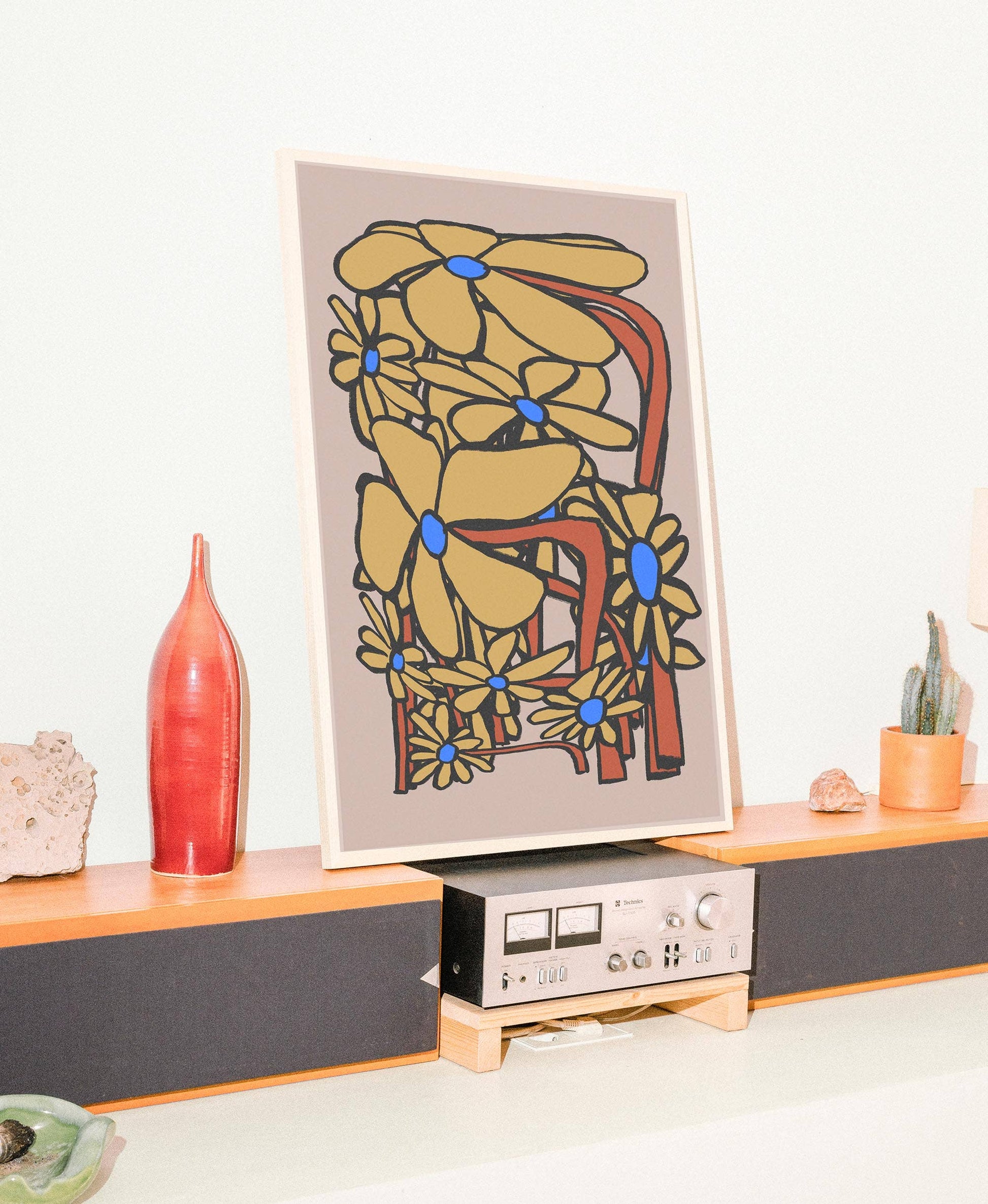 An A3 print designed by Marcello Velho, an illustrator and designer born in Miami but now based in Brighton. Marcello is known for his bold, playful, and colourful artwork, with a distinct style characterized by vibrant palettes and quirky characters. His unique aesthetic often explores themes of nature, creating a visual world that is both whimsical and thought-provoking.