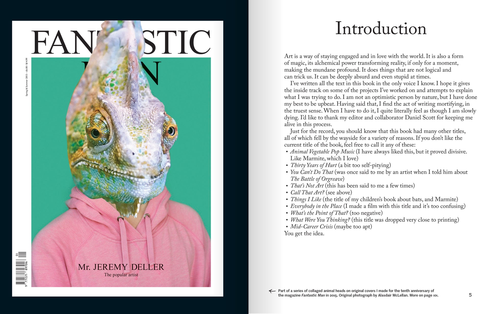 This is artist Jeremy Deller's attempt to connect the key works of his career to the art, pop music, film, politics and history that have inspired him. The book features work from across his life and art including Sacrilege, the inflatable Stonehenge, the Iggy Pop Life Class, The Battle of Orgreave, bats (a subject in at least three of Deller's works), Andy Warhol (whom he met in 1986), rave culture, hen harriers pecking out the eyes of a Tory MP, and a giant Chameleon slide.