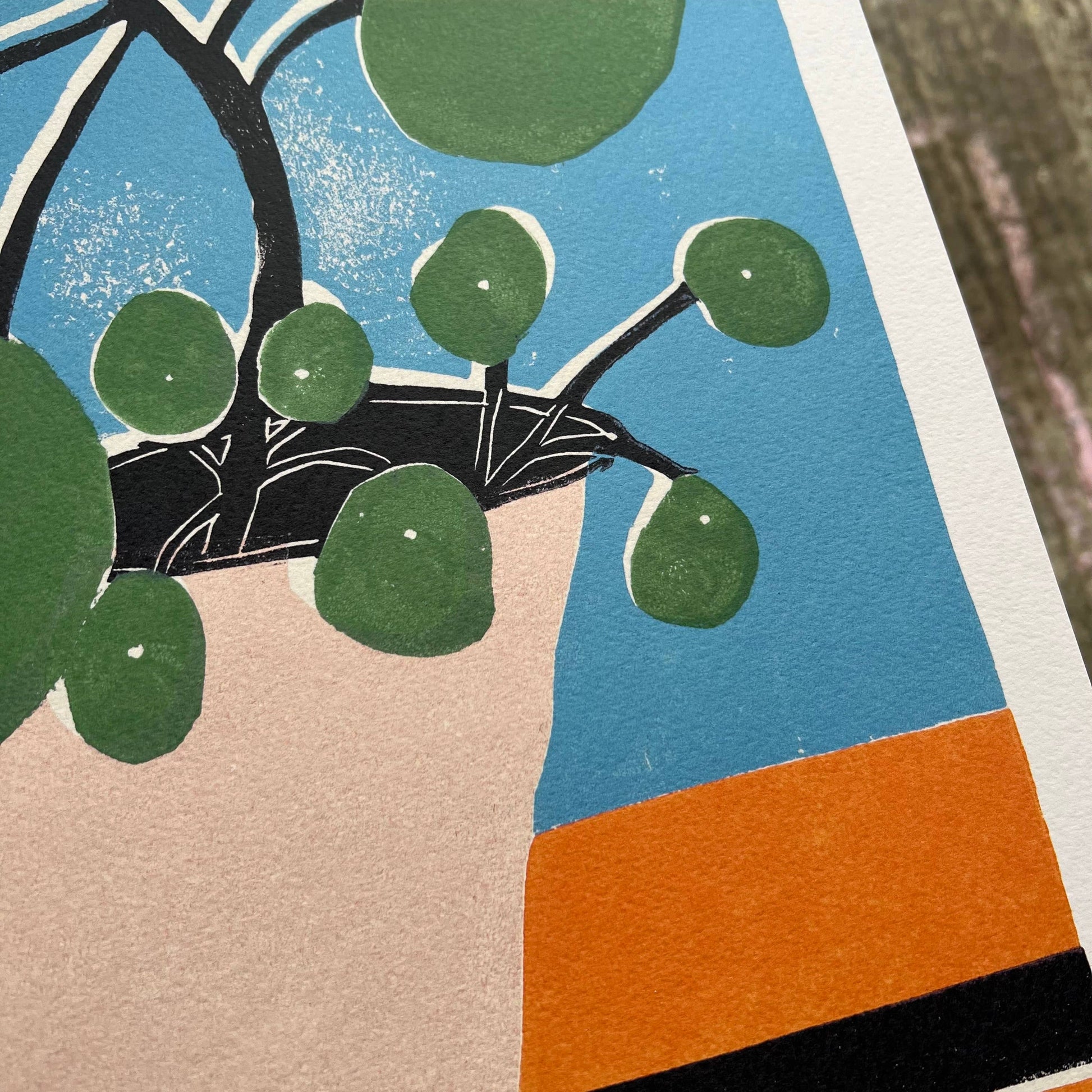 An A3 print designed by Luiza Holub, an artist and printmaker from Sheffield. Luiza uses traditional linocut printmaking techniques, creating work that is contemporary with a nod to the traditional. Her prints exhibit a fascination with flora and familiar everyday objects, using bold colour and simple compositions. This is a professional digital print of an original linocut print.