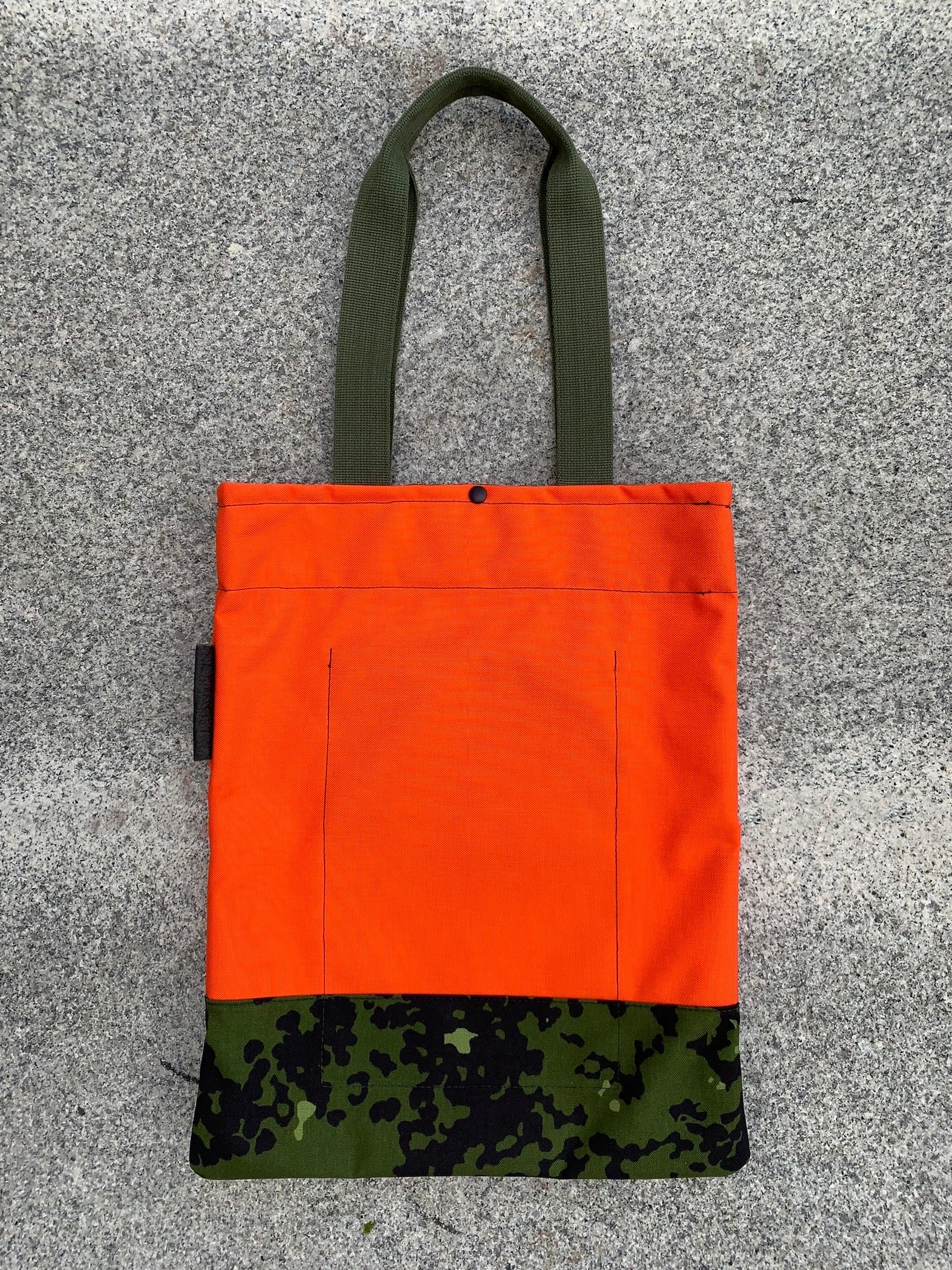 Cordura® is exceptionally strong, durable and waterproof, so when it comes to those wet and windy days this generous tote will keep all that sits within it safe and dry. Combined with vivid orange, this modern camo print in strong colours stands out from the crowd. Inside, a generous pocket will keep essentials to hand with the single snap fastener giving an added sense of security when out and about. Cotton webbing handles are generous in length and comfortable, allowing the tote to be worn over the shoulder of even the heaviest coat. All in all a hardworking addition to your everyday life.