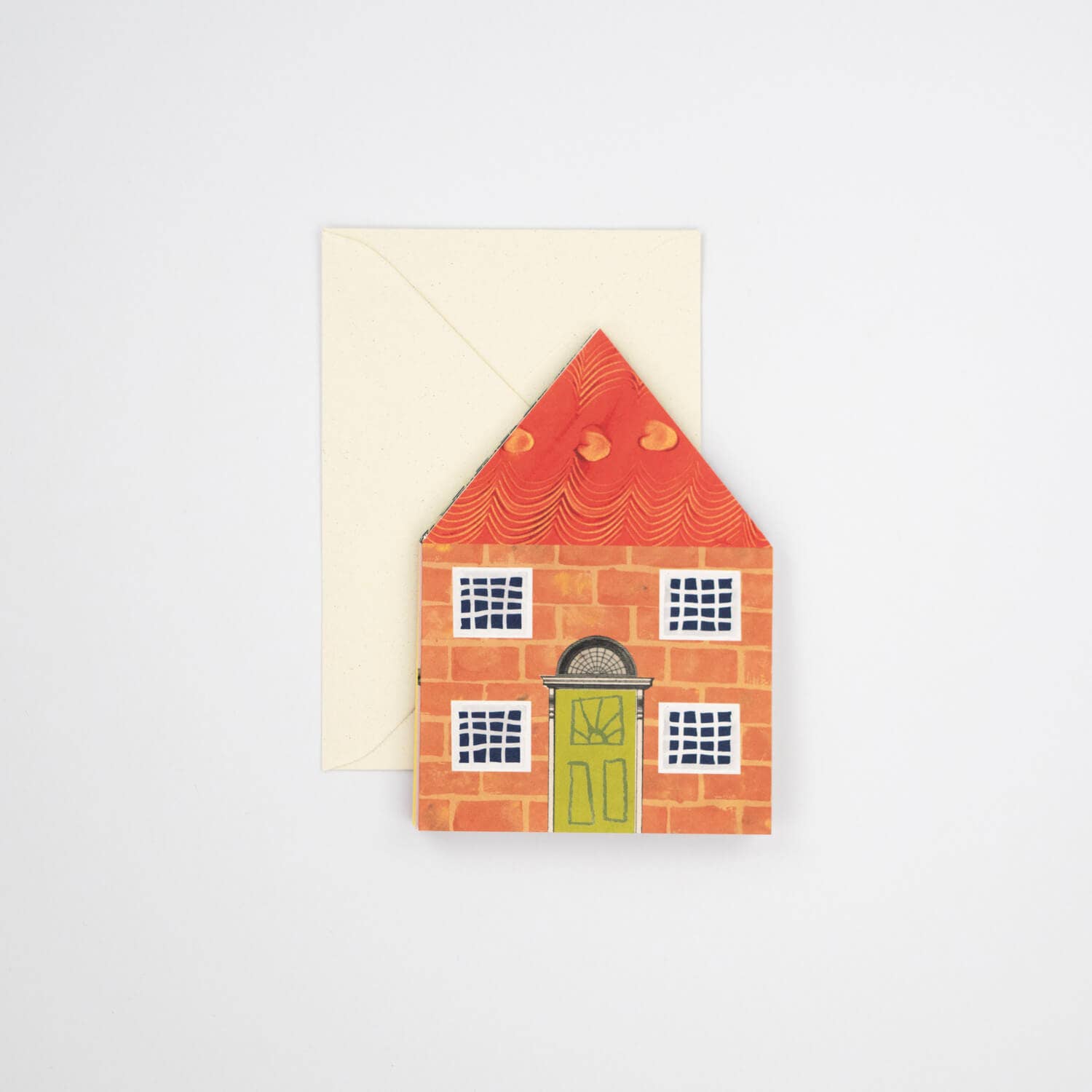 A concertina of quintessential houses on a card! Featuring six sweet homes designed using a combination of collaged antique etchings, marbled block papers, paste paper, dolls house papers and block prints. It stands up by itself to make a beautiful card and decoration in one. A lovely greetings card for that house-proud homebody, to welcome someone home or to send congratulations on a move.