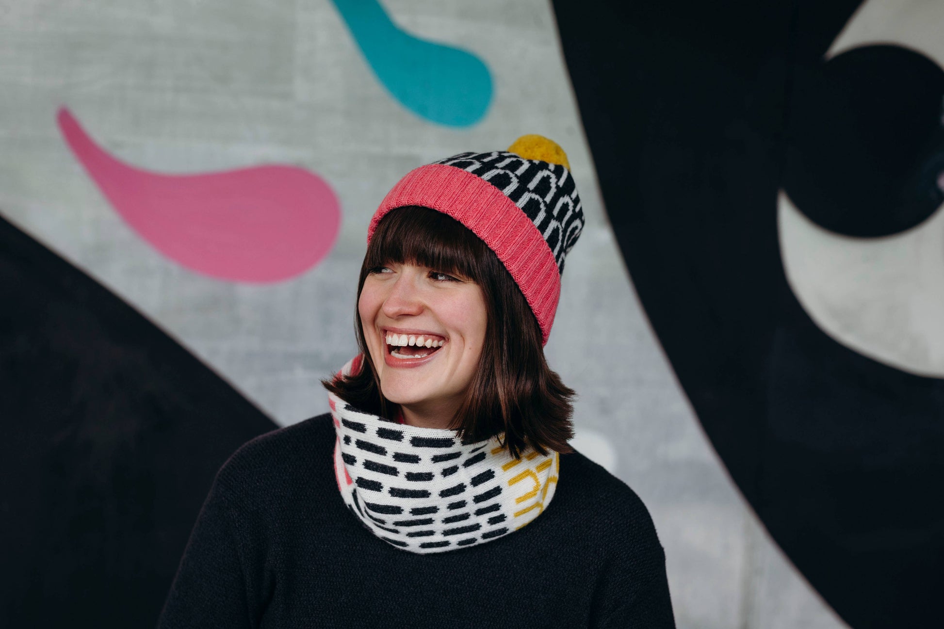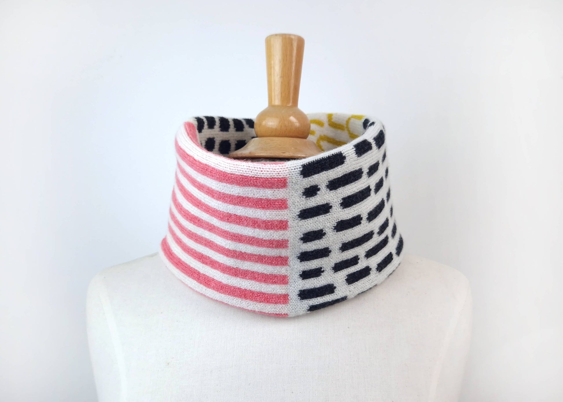 Lambswool Neck Warmer Snood in Pink and Yellow
