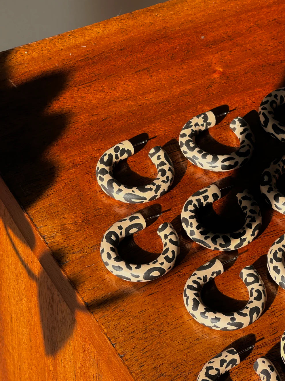 Bring a touch of playful style to any outfit with these eye-catching Leopard Print Hoops from Kalei. Handcrafted from lightweight polymer clay, each brown and beige hoop is carefully designed with a unique leopard pattern, making every pair totally one of a kind!