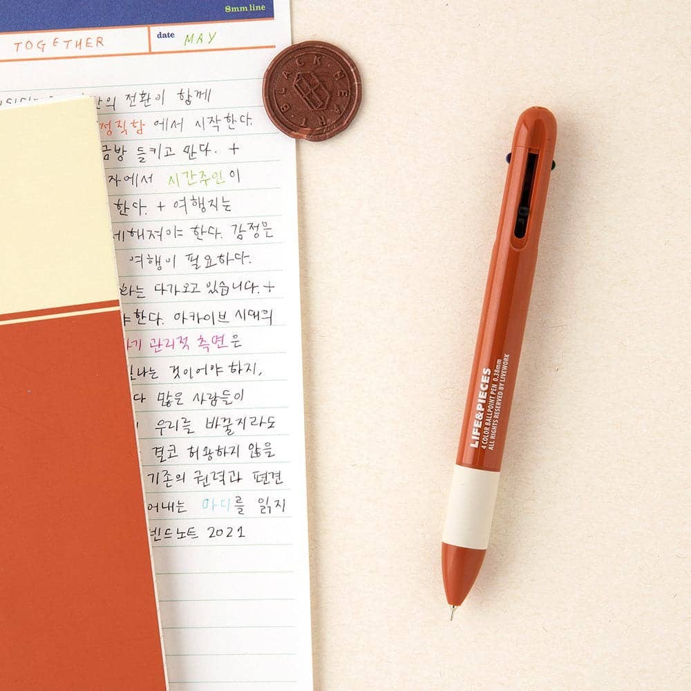 This Life & Pieces 4 colour ballpoint pen from the cult Korean brand Livework is a stylish pen with 4 different ink options in one pen. Every different pen colour comes with four different gel ink colours. Refills are available here.
