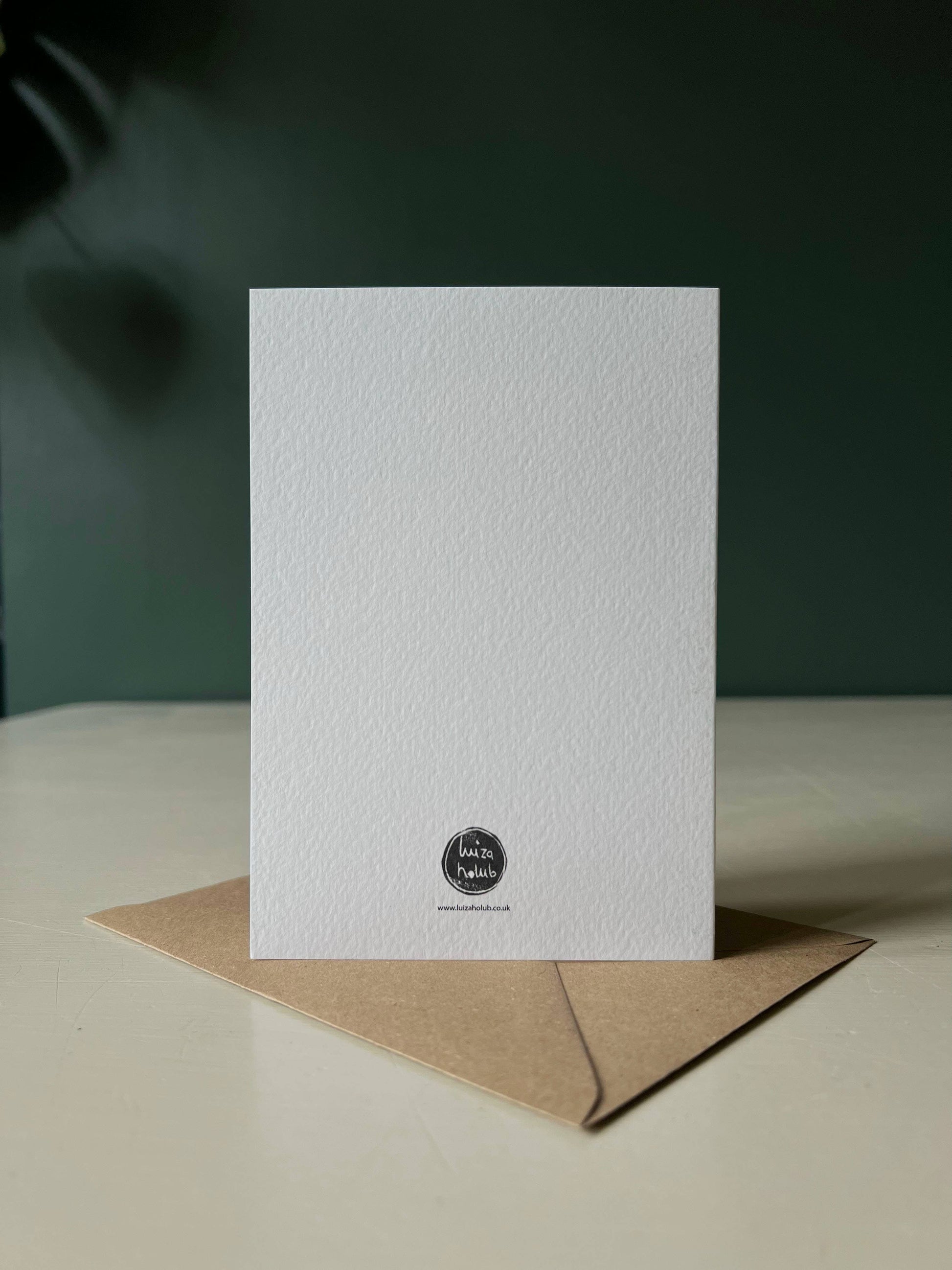 An everyday blank greetings card designed by Luiza Holub, an artist and printmaker from Sheffield. Luiza uses traditional linocut printmaking techniques, creating work that is contemporary with a nod to the traditional. Her prints exhibit a fascination with flora and familiar everyday objects, using bold colour and simple compositions. This card is a professional digital print of an original linocut print.