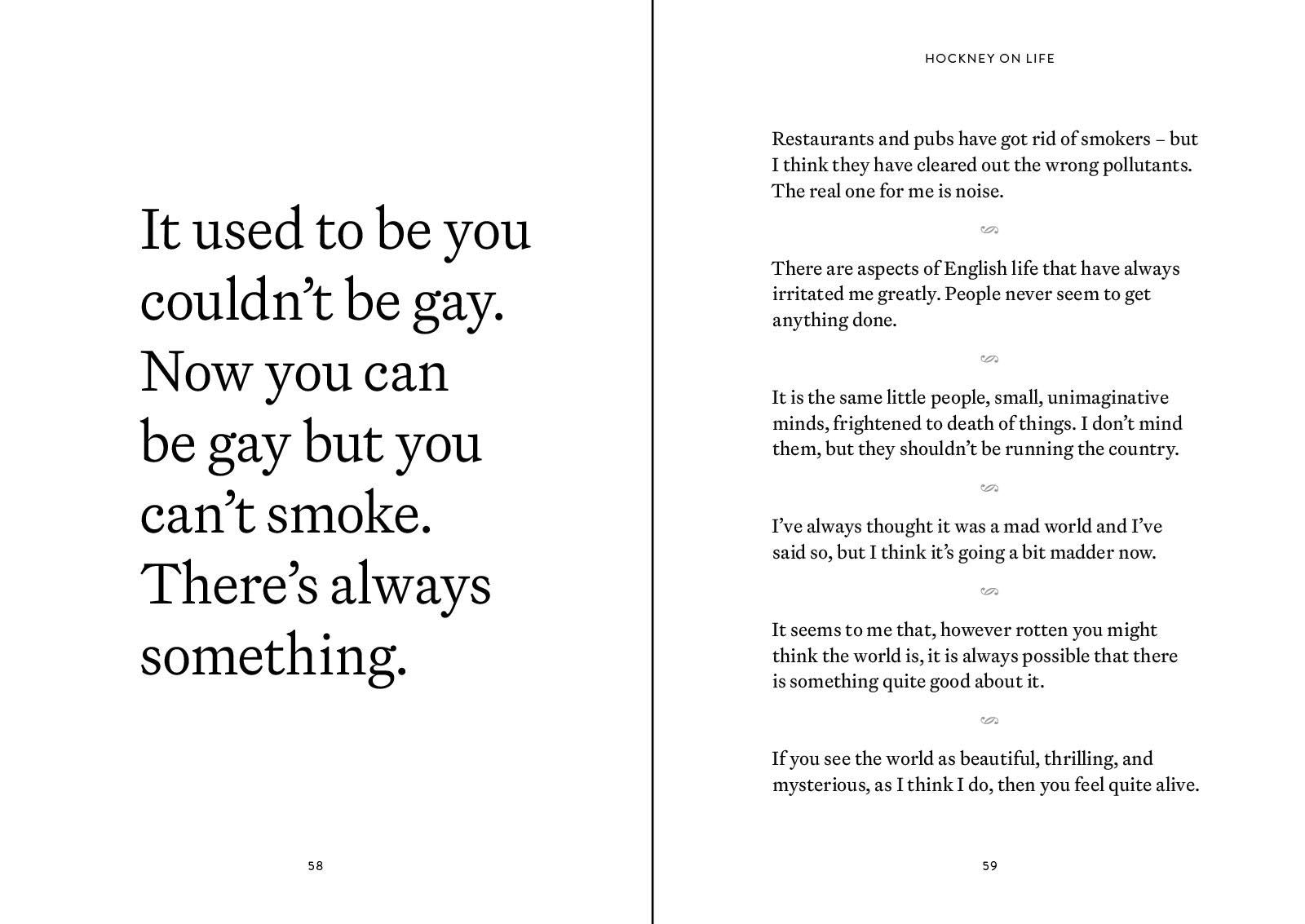 From everyday observations - "The eye is always moving; if it isn’t moving, you are dead" - to artistic insights such as "painted colour always will be better than printed colour, because it is the pigment itself", David Hockney has a knack for capturing profound truths in pithy statements. This anthology of quotations ranges across topics including drawing, photography, nature, creativity, the internet, and other image-makers including Caravaggio, Cezanne and Walt Disney. A delightful and engaging overview of the artist’s inimitable spirit, personality and opinions.